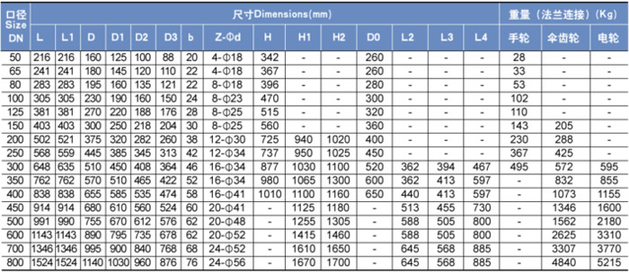 主要外形和連接尺寸PN10MPa