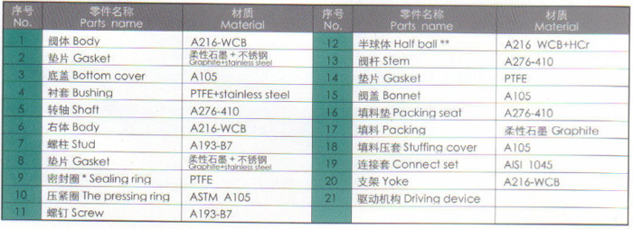 主要零件材質表